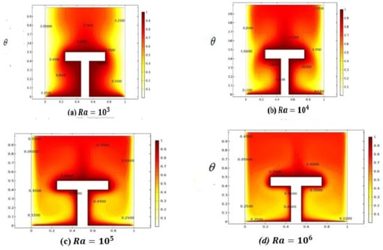 Variation in temperature distribution against (Ra).