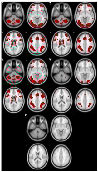 - Ashburner, J.; Barnes, G.; Chen, C.-C.; Daunizeau, J.; Flandin, G.; Friston, K.; Kiebel, S.; Kilner, J.; Litvak, V.; Moran, R.; et al. SPM 12 Manual; Wellcome Trust Centre for Neuroimaging: London, UK, 2016. [Google Scholar]