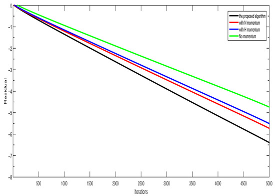 - Figure 3 means that UGNH with the Nesterov momentum and the Heavy-ball momentum improved the convergence rate compared to the algorithm with only one or no momentum.