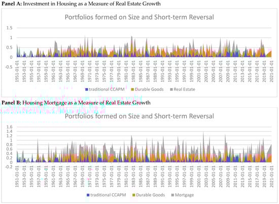 In addition, Figure 2 displays the comparison between different models based on the portfolios formed on size and short-term reversal. Since there are two ways to signature the effect of real estate on CCAPM, it is been divided into two panels (Panel A and Panel B) to show the results.