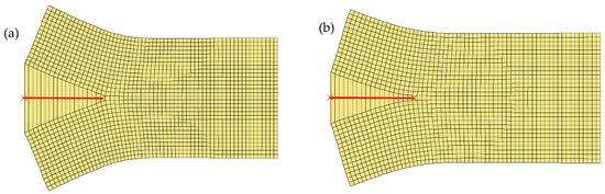 The tensile strength was the same as ft = 3.18 MPa, and the fracture energy was made to be smaller than Ef = 12.5 N/m to increase the gradient of the cohesive force. The linear and exponential softening models used in this study are depicted in Figure 8. It can be seen from the profile that they will result in a similar FPZ length, but different stress gradients.