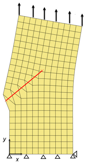 - Belytschko, T.; Black, T. Elastic crack growth in finite elements with minimal remeshing. Int. J. Numer. Methods Eng. 1999, 45, 601–620. [Google Scholar] [CrossRef]