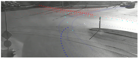 A stand-alone tracking system takes the raw video from video surveillance cameras and handles it to perform the object detection and convert the trajectory into several tracking points on images (Figure 2). The basic concept of this process is described more deeply in Section 4. The outcome of the tracking system is tracking points (TPs), containing information such as vehicle ID, timestamp, and possible spatial coordinates. These TPs are considered an input for processing in the context of the current work.