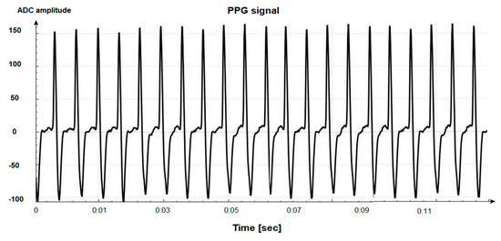 Electrocardiography and photoplethysmography are modern non-challenging tools for studying the health status of subjects, providing information about the state of the cardiovascular system, the activity of the autonomic nervous system, and others. This paper presents the results attached to three types of cardio data: PPG (Figure 1), ECG (Figure 2), and Holter records. The waveform of the cardio signal recorded by a Holter device is identical to that of the ECG signals recorded with an electrocardiograph; the difference is that the Holter device is designed to record continuous ECG data (24 h, 72 h, and more) All data on which the tests are applied are obtained cardio records, which is especially important for the reality of the results. Preliminary processing was applied to the three types of study data, which includes the reduction of interference [23], detection of the maximum deviations in the signals (QRS complexes are Q, R, S-characteristic points in the ECG signal, with a maximum deviation of the amplitude at the R point [24]), and localization of the P peak at the PPG signal.
