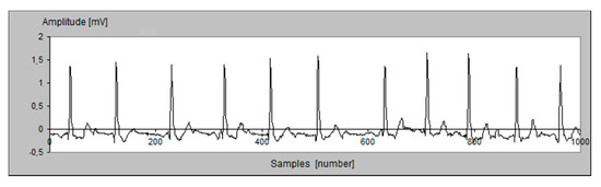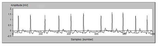 The dependence of MSE on the selected algorithm of threshold processing of the coefficients in the compression step of the proposed method was studied. The initial ECG data examined are shown in Figure 4, while Figure 5 shows a graph of the reconstructed data.