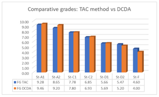 This confirms that the general results of the previous section seem to have been conveyed to the different type of students. The dynamical assessment with TAC, in general, seem to provide some insignificantly higher increased recognition in lower marks and lower increase in higher marks. Clearly, the higher or lower effect depends on the design of the rules for dynamical continuous assessment. In this implementation, rules have mimicked those deployed at UPV.