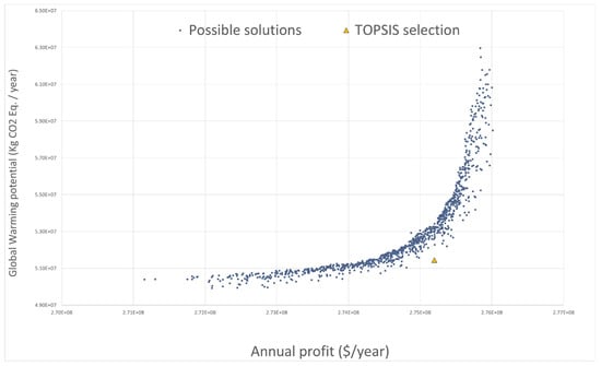 The optimal HSC network configuration is selected using a multi-criteria decision-making technique (MCDM). Due to the type of problem (input data), a multi-attribute decision-making (MADM) method is adopted. This type of technique calculates the distance between each alternative and a central point. VIKOR and TOPSIS methods were considered (differing by criteria normalization procedure). Both techniques use the CP method that seeks to obtain the closest alternative from the hypothetical optimal solution. The TOPSIS method was selected since it considers the distance to the ideal solution and the distance to the non-ideal solution, while VIKOR only considers the distance to the ideal solution.