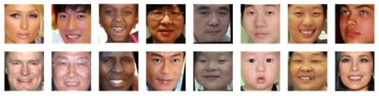 - Cao, Q.; Shen, L.; Xie, W.; Parkhi, O.M.; Zisserman, A. Vggface2: A dataset for recognising faces across pose and age. In Proceedings of the 2018 13th IEEE international Conference on Automatic Face & Gesture Recognition (FG 2018), Xi’an, China, 15–19 May 2018; pp. 67–74. [Google Scholar]
