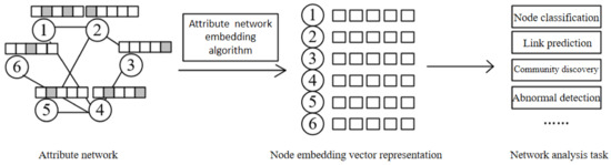 - Meng, Z.; Liang, S.; Zhang, X.; McCreadie, R.; Ounis, I. Jointly learning representations of nodes and attributes for attributed networks. ACM Trans. Inf. Syst. 2020, 38, 1–32. [Google Scholar] [CrossRef] [Green Version]