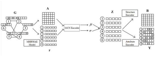 - Attribute Network Encoder: The adjacency matrix and the attribute feature learning matrix are employed as input to the variational graph autoencoder, which takes GCN for encoding and maps the attribute network to a Gaussian distribution.