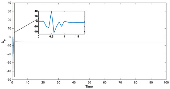 Additionally, Figure 5 depicts the control input based on the applied optimal reinforcement learning-based controller. Based on the numerical simulation, using the proposed controller, after a short period of time, the system is completely stabilized, and the states of the system reach their desired value.