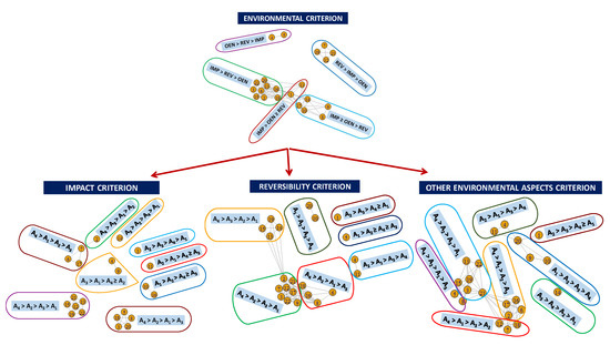 Finally, regarding each environmental criterion (Table 5 and Figure 6) we can see that A4 is the most supported alternative by the 3 sub-criteria (15 decision-makers in environmental impact, 16 decision-makers in reversibility and 15 decision-makers in other environmental aspects). For the rest of the alternatives, it highlights the support shown for alternative A2 to occupy the first or second place (16 decision-makers in impact, 16 in reversibility and 14 in other environmental aspects).