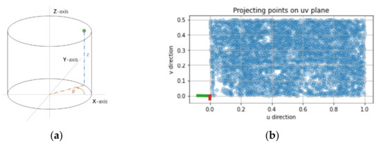 For the shape of a cylinder model, the analytical parameterization of its point cloud is carried out in a cylindrical coordinate system. The output of the parameterization is the values of the angle and height as shown in Figure 5.