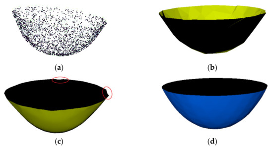 - Berger, M.; Tagliasacchi, A.; Seversky, L.M.; Alliez, P.; Guennebaud, G.; Levine, J.A.; Sharf, A.; Silva, C.T. A Survey of Surface Reconstruction from Point Clouds. Comput. Graph. Forum 2017, 36, 301–329. [Google Scholar] [CrossRef]