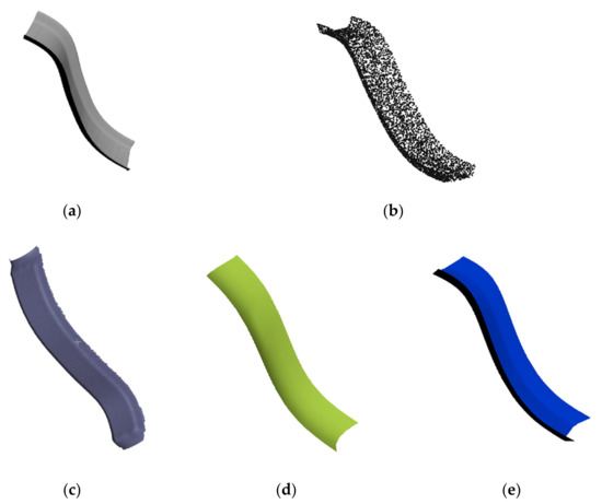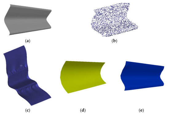 - Ma, W.; Kruth, J.-P. Parameterization of randomly measured points for least squares fitting of B-spline curves and surfaces. Comput. Aided Des. 1995, 27, 663–675. [Google Scholar] [CrossRef]