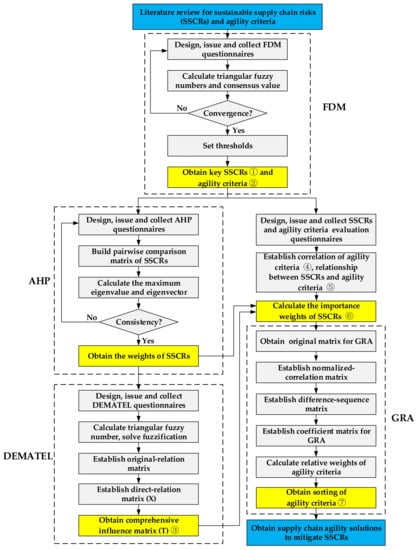 The rest of the paper is organized as follows: Section 2 identifies SSCRs and agility criteria from a literature review and outlines research gaps and highlights. Section 3 describes the QFD-MCDM integrated framework and its corresponding algorithm. Section 4 illustrates the empirical analysis and discussion with multinational electronic enterprises as an example. Finally, Section 5 summarizes the main contributions of this study and provides suggestions for future research.