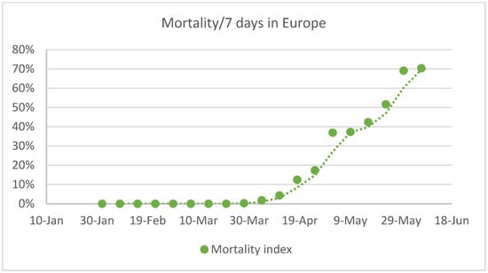 We have used the percentage of increase in cumulative deaths, measured weekly as a percentage per 100,000 habitants, as cases detected during the first wave were not measured in the same diametric manner in every country (due to the different capacities to do so) and weekend data were usually not published on time by every country. The availability of tests and the differences in how countries report their figures have been amongst the biggest limitations to our data.
