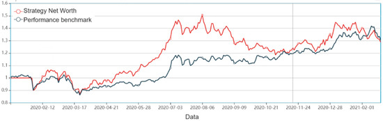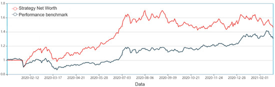 Thirdly, this paper designs and implements a quantitative trading strategy. Based on the CS-GRU stock selection model, this paper designs and implements a quantitative trading strategy. The sharp ratio of 127.08%, the annualized rate of return 40.66%, the Alpha excess return of 13.13%, and the maximum drawdown rate of −17.38% of the back test results show that the CS-GRU-based multi-factor stock selection model proposed in this article is effective for the Chinese stock market. Trading strategy research is very meaningful.