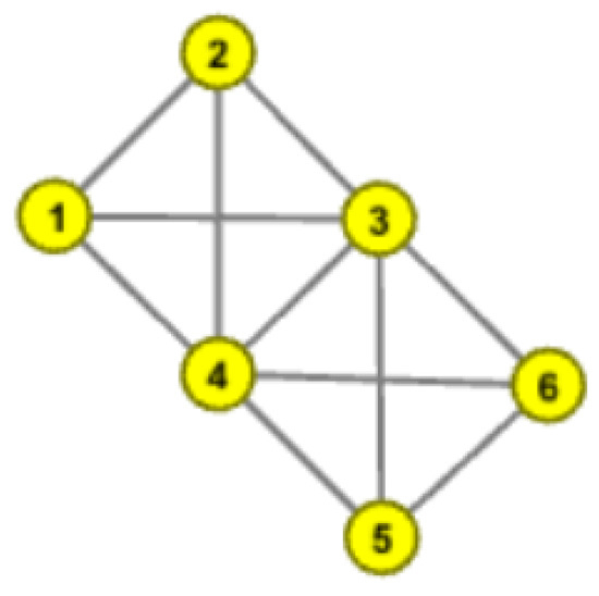 - Figure 3 shows the situation when the number of common nodes is greater than 1. In the figure, nodes 1, 2, 3, 4 and 3, 4, 5, 6, respectively, form two complete subgraphs, and the number of common nodes is 2. Obviously, due to the existence of public nodes 3 and 4, nodes 2, 3, 4, 5 and nodes 1, 3, 4, 6, respectively, form an approximate complete subgraph, which makes the original two complete subgraphs connect very closely, so the nodes 1, 2, 3, 4, 5, 6 tend to be in the same community with a high probability, so it is reasonable that the two complete subgraphs are folded as a node.