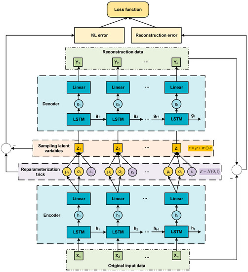 It can be seen from Figure 2 that the loss function of VAE described as (2) includes: (1) the reconstruction error between the reference input data and reconstructed data; (2) the Kullback–Leibler divergence error (KL error) caused by the encoder sampling.