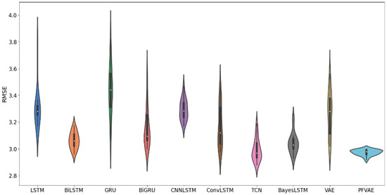 To validate the effectiveness of the proposed method, we repeated each model independently with the same dataset 20 times and recorded its RMSE values to ensure the objectivity of the results. The statistical results are shown in Figure 6.