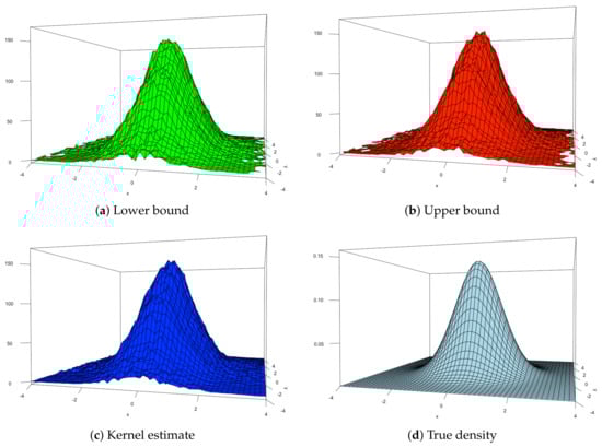 where K is a probability density on , is a sequence of positive real numbers, and is a sample from g. In the literature, is commonly referred to as the Parzen–Rosenblatt estimator [22,24]. Its extension to the multivariate case was studied by [25] who proposed as the estimator