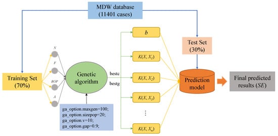 The support vector machine (SVM) algorithm was invented by Cortes and Vapnik [48]. It is one of the machine learning methods based on statistical learning theory. The SVM model mainly includes the input layer, kernel function layer and output layer. Among them, the key function layer mainly includes radial basis function (RBF), polynomial and linear functions, which are the key factors to affect the prediction performance. In this paper, the genetic algorithm (GA) is combined with SVM to optimize the parameters. The GA [49] is a new method to find the optimal solution through the natural evolution process simulation, and the steps of GA mainly include population initialization, individual evaluation, selection operation, crossover operation, mutation operation and termination condition judgment. The SVM combined with GA can better optimize the parameter selection and improve the prediction accuracy.