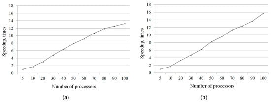 It is obvious that the goal of parallel computing is to minimize the total execution time, and the most efficient parallelization strategy for each problem generally requires a unique solution. However, despite the variety of the solutions, it is possible to identify some basics of parallel algorithm design, for example, Ian Foster’s PCAM concept is such a regulation []. Sometimes it is difficult for software developers to distinguish between the Partitioning, Communication, Agglomeration and Mapping stages, and they intuitively go through these stages when aiming for a highly scalable algorithm and good load balancing.