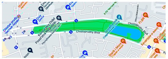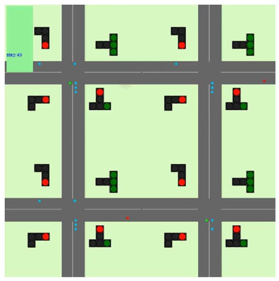 A microscopic approach to transport modeling based on the cellular automata (CA) theory [] has gained great popularity over the past few years. This approach allows us to take into account many technical parameters and features of the drivers’ behavior. Such models can include a detailed description of cars’ movement at intersections and in places of narrowing of roads, overtaking and changing lanes, ensuring a high degree of accuracy of the model’s correspondence to the real situation.