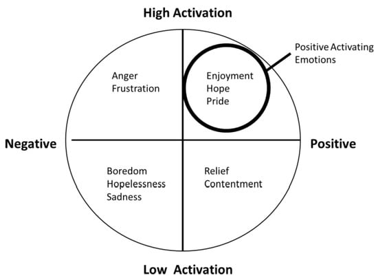 Understanding emotions, managing emotions and empathizing with others are all important skills in nonverbal communication and social integration. Emotions are also components of school readiness and academic success [6,7]. Researchers have found that there are statistically significant associations between social-emotional skills measured in kindergarten and key young adult outcomes over multiple domains of education, mental health, employment, substance use and criminal activity. Non-cognitive skills interact with cognitive skills to enable success in school and at the workplace. Pekrun [20] identified the so-called academic emotions and discovered that a good mood encourages comprehensive, creative thinking (Figure 1). Negative emotions like anger, sadness, fear or boredom are negatively associated to the learning process and outcomes, whereas positive emotions like enjoyment and hope are positively related to the learning process and outcomes. In many cases, negative emotions are also detrimental to motivation, performance and learning [21,22,23].