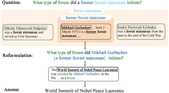 - Welbl, J.; Stenetorp, P.; Riedel, S. Constructing Datasets for Multi-hop Reading Comprehension Across Documents. arXiv 2018, arXiv:1710.06481. [Google Scholar] [CrossRef] [Green Version]