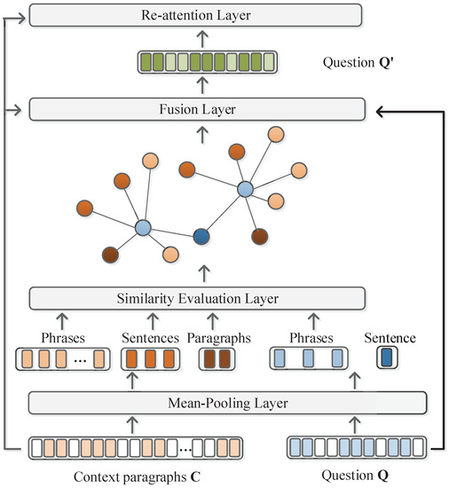 where is the representation of the question, and is the same layer as in Equations (9)–(11). Finally, we derive the new representation of the question, denoted by . Additionally, we utilize re-attention mechanism [35] to update context paragraphs. This post-processing is to help the model locate the correct span of the answer.