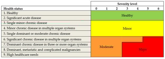 Indicator of morbidity: classification in four groups resulting from the combination of CRG and severity level. Source: Adapted from [].