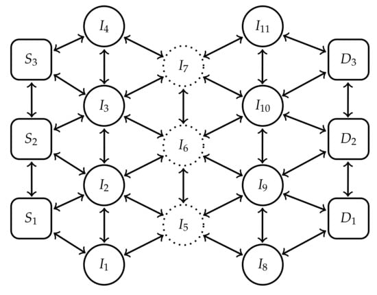 - Ahuja, R.K.; Magnanti, T.L.; Orlin, J.B. Network Flows: Theory, Algorithms, and Applications; Prentice-Hall, Inc.: Upper Saddle River, NJ, USA, 1993. [Google Scholar]