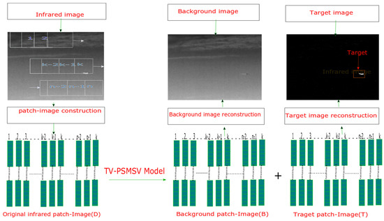 The entire target-background extraction process using the PSMSV-TV paradigm is depicted by Figure 1 and is described as given below steps: