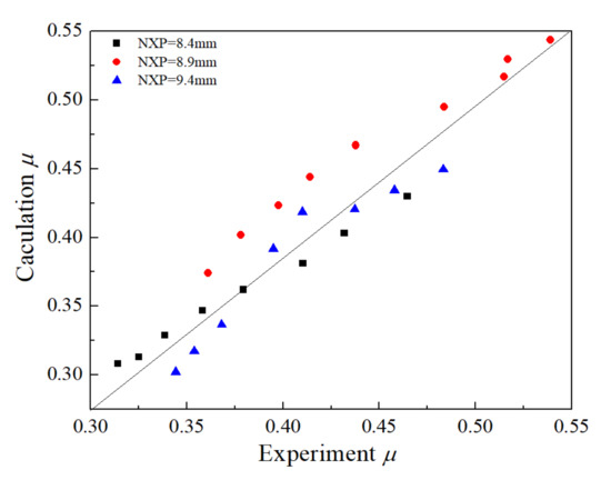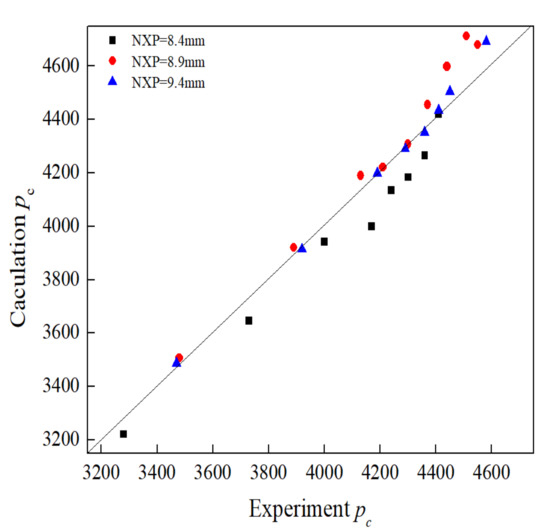 Here, the entrainment ratio µ and the ejector outlet pressure pc calculated by the present model are compared with the above experimental data to verify mode accuracy. Figure 3 shows that the maximum deviation, minimum deviation, and average deviation of the entrainment ratios between the model calculation value and the experimental measurement are 12.21%, 0.37%, and 4.93%, respectively. To compare the ejector outlet pressure pc, as shown in Figure 4, the maximum deviation, minimum deviation, and average deviation are 4.48%, 0.025%, and 1.55%, respectively. The deviation is mainly due to the machining accuracy of ejector, the influence of friction, and heat transfer model; however, the calculation error is within the allowable range.