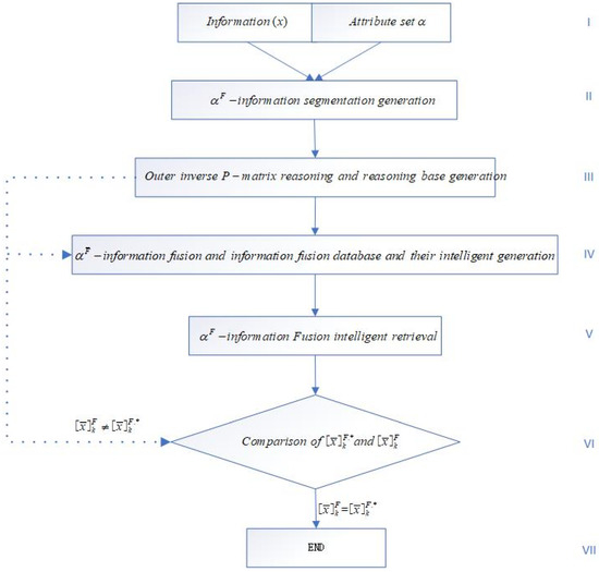 In this section, only the α F ¯ -intelligent fusion intelligent acquisition intelligent retrieval algorithm is given, which is a part of the ( α F , α F ¯ ) -information fusion intelligent acquisition intelligent retrieval algorithm; the complete ( α F , α F ¯ ) -information fusion intelligent acquisition intelligent retrieval algorithm is composed of the α F -information fusion intelligent acquisition intelligent retrieval algorithm and α F -intelligent fusion intelligent acquisition intelligent retrieval algorithm. The α F ¯ -information fusion intelligent acquisition intelligent retrieval algorithm is shown in Figure 1.