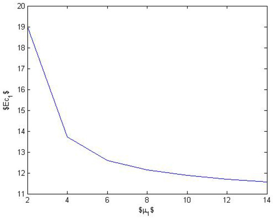 Table 1 describes the variation in various performance measures of the system with the increase in the rate of service corresponding to class 1 customers. Clearly, customer accumulation in the infinite queue goes down and the type 1 inventory level decreases with an increase in Both these system behaviors are intuitively acceptable. Pictorial representation of this phenomenon is shown in Figure 1. The probability that type 1 inventory become available in the presence of the corresponding class of customers decreases with the increase in service rate. While increasing the measures corresponding to type 2 customers do not show any considerable change. In Table 2, changes in performance measures with the increase in the service rate for type 2 customers are shown. The accumulation of customers of type 2 and corresponding inventory level decreases with increase in the rate of the matching process. Probability of availability of type 2 items is inversely proportional to the service rate. Figure 2 shows the decreasing pattern of customer accumulation in the infinite queue with for different values of