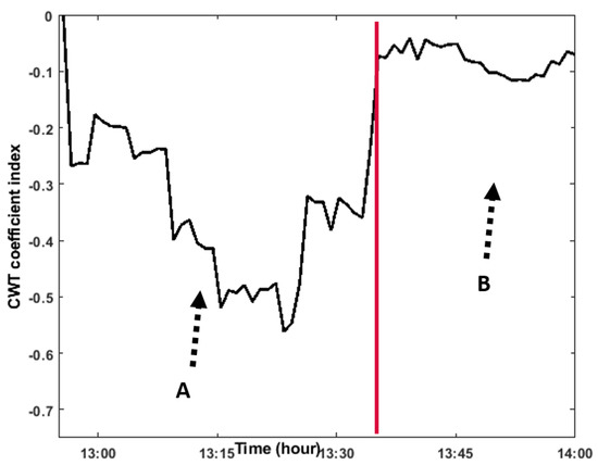 There is a simple approach to overcome this problem, named Non-Decimated Wavelet Transform (NDWT) [32]. The NDWT is an undecimated form of a conventional DWT based on Mallat’s multiresolution algorithm. It is performed by the insertion of zeros in the filter for upsampling and suppressing the downsampling step of the decimation algorithm. Its main advantage is translation invariance with respect to DWT, since the main signal is not decimated, so the resolution can be maintained, and signal-to-noise ratio increases [33]. These characteristics make this algorithm suitable for change detection, signal fusion, and feature extraction.
