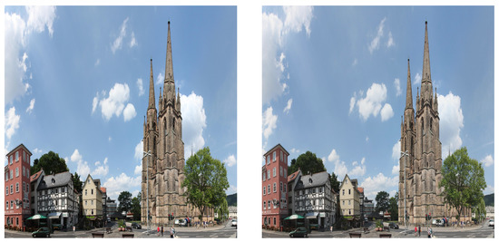 One way to deliver the shadow images to the intended participants is using a steganographic scheme, such as that proposed in [29]. Suppose that the host image is the one presented in Figure 4 (left). The stego image carrying the shadow image presented in Figure 2 is depicted in Figure 4 (right). It is evident that one cannot distinguish between the host image and the stego image (for further details the reader is referred to [29]).