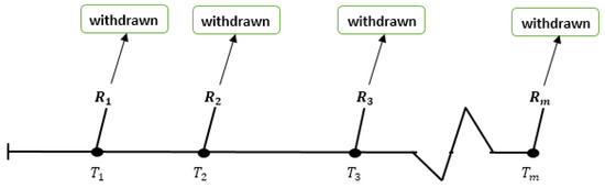 where . The patterns of CT can be classified according to m. In our study, and are used when and and are used when . - Removed items are assumed at different sample size n as shown in Table 1 where and r is the number of failure items.