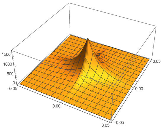 At the sixth step of the Algorithm 1, one is able to derive a Gaussian copula with marginal Laplace distributions. The PDF of the constructed copula is plotted in Figure 2.