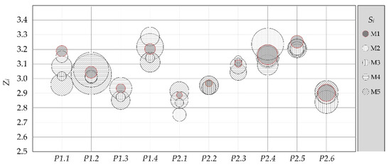 The basic principle of the method is to compare the considered alternatives with the best within the defined parameter. The TOPSIS method is based on the choice of the alternative that has the shortest “distance” from the ideal solution, i.e., the longest to the anti-ideal solution [75]. The ideal positive solution is formed of all the best values that can be obtained from the considered criteria. In contrast, the negative ideal solution is formed from all the lowest values [76].