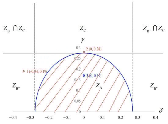 For the same reason, when , then we can conclude that and . Thus, the estimator of is . Therefore, the confidence region can be shown as follows: