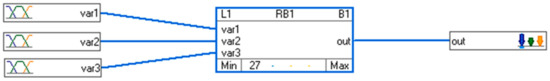 The distribution law graph for the variable var1 is shown in Figure 12. The variables var2 and var3 have the same distribution laws. The variable out has five gradations.