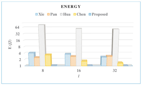 Charts of Figure 8, Figure 9, Figure 10 and Figure 11 compare the obtained results of area (A), area–time product (AT), consumed power (P), and consumed energy (E), respectively, of the proposed multiplier structure with the adopted ones.