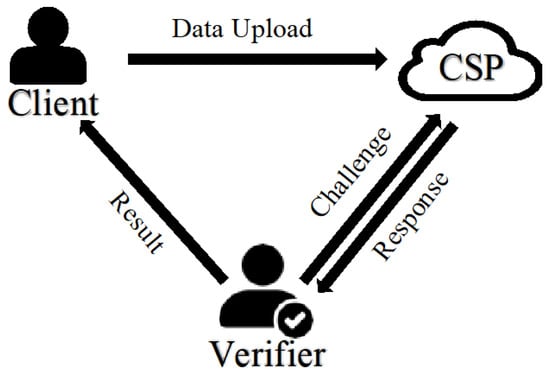 - Ateniese, G.; Burns, R.; Curtmola, R.; Herring, J.; Kissner, L.; Peterson, Z.; Song, D. Provable data possession at untrusted stores. In Proceedings of the 14th ACM Conference on Computer and Communications Security, New York, NY, USA, 2 November 2007–31 October 2007; pp. 598–609. [Google Scholar]