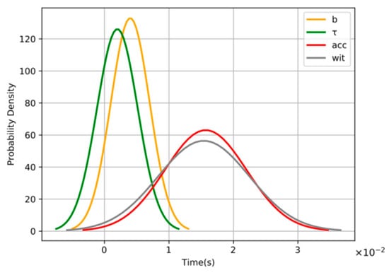 To measure the distribution trend of the computing overhead with different parameters, we fixed the size of the data file at 2 MB and the block size at 256 bytes. Then, we repeated the experiment 100 times and recorded the computing overhead of the parameters for each experiment. The distribution trend of the computing overhead is shown in Figure 7. The computing overhead of all parameters was according to Gaussian distribution.