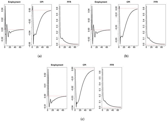 Therefore, if the behavior of the empirical IRFs is similar to Figure 1, there is evidence that the structural analysis methods of machine learning regularized VARs are consistent with economic theory and evidence. To ensure robustness, a hundred runs of the IRF estimates are performed via bootstrap methods.