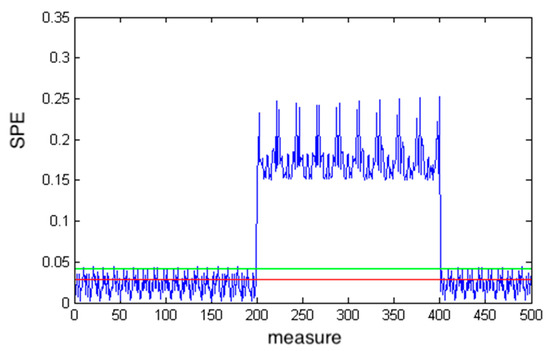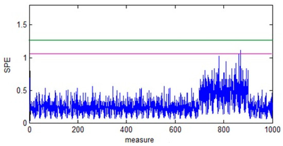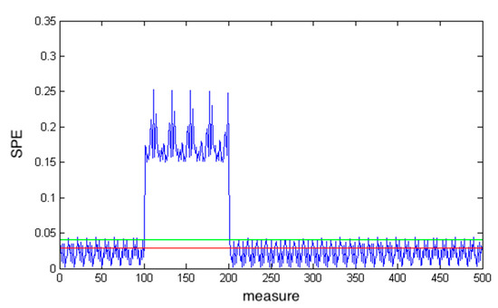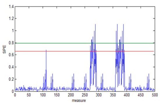 - We apply the SPE for fault detection to the reconstructed matrix as shown in Figure 10. Note that there is an exceeding of limits which proves the existence of defects.